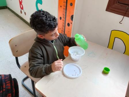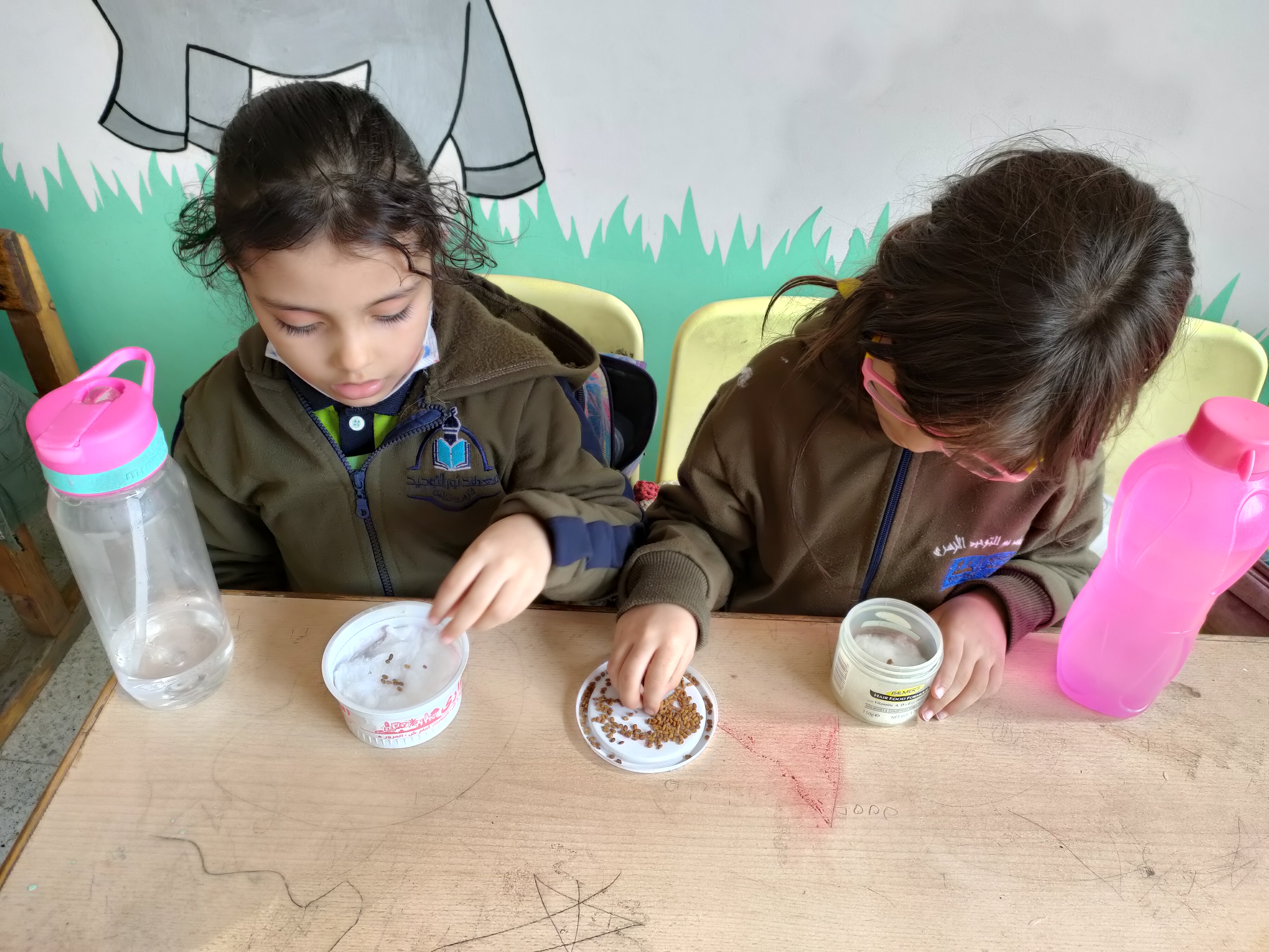 العملية التعليمية قام الطلاب بتنفيذ نشاط زراعة الحلبة