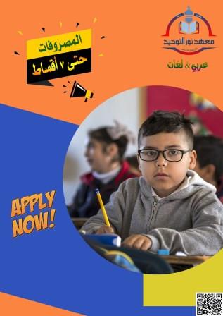يُعلن معهد نور التوحيد الأزهري الخاص (عربي- لغات) عن بدء المرحلة الأخيرة لتقديم طلبات التقديم لمرحلة PreKG - K.g والصف الأول الابتدائي للعام الدراسي الجديد ٢٠٢١ / ٢٠٢٢