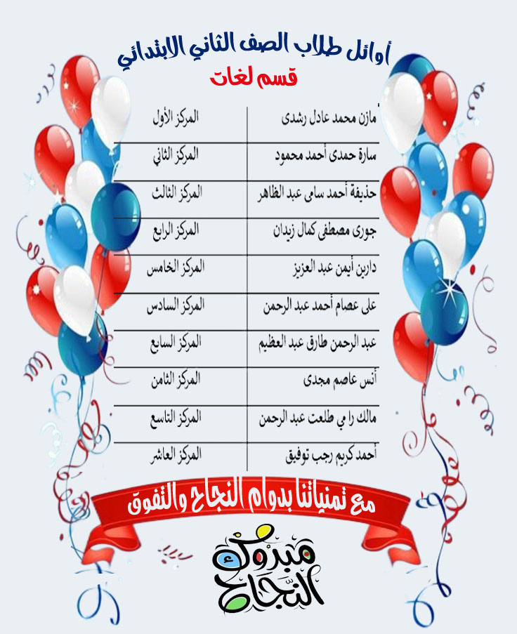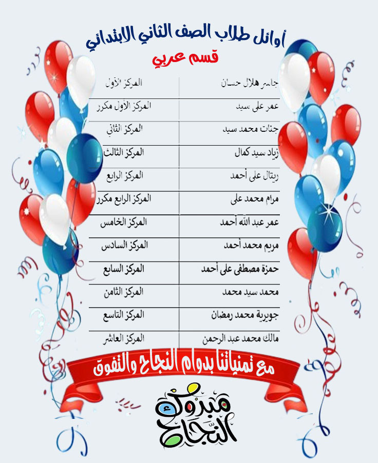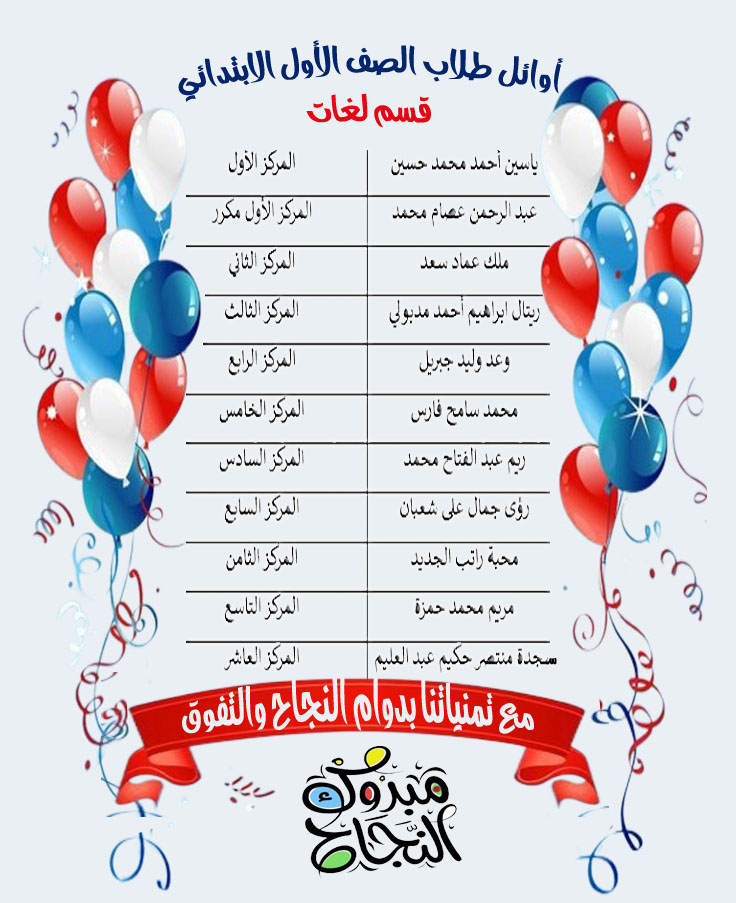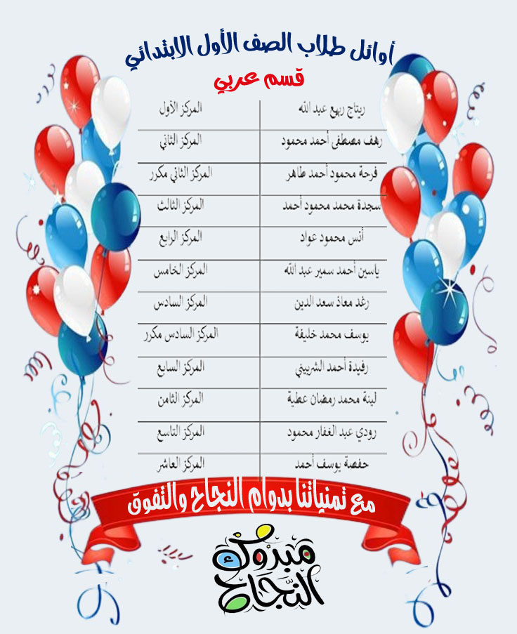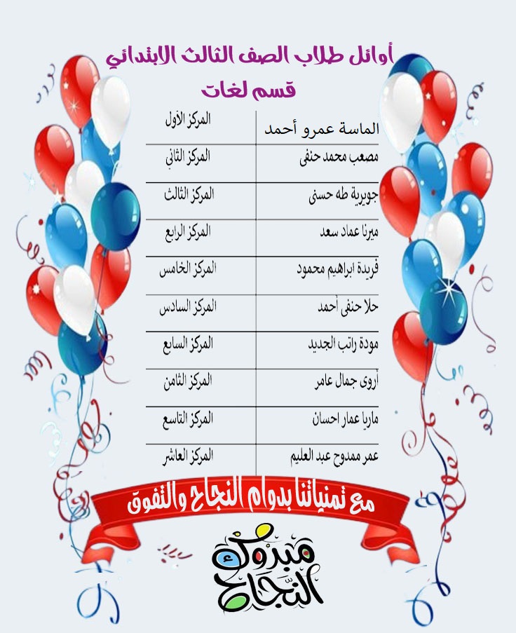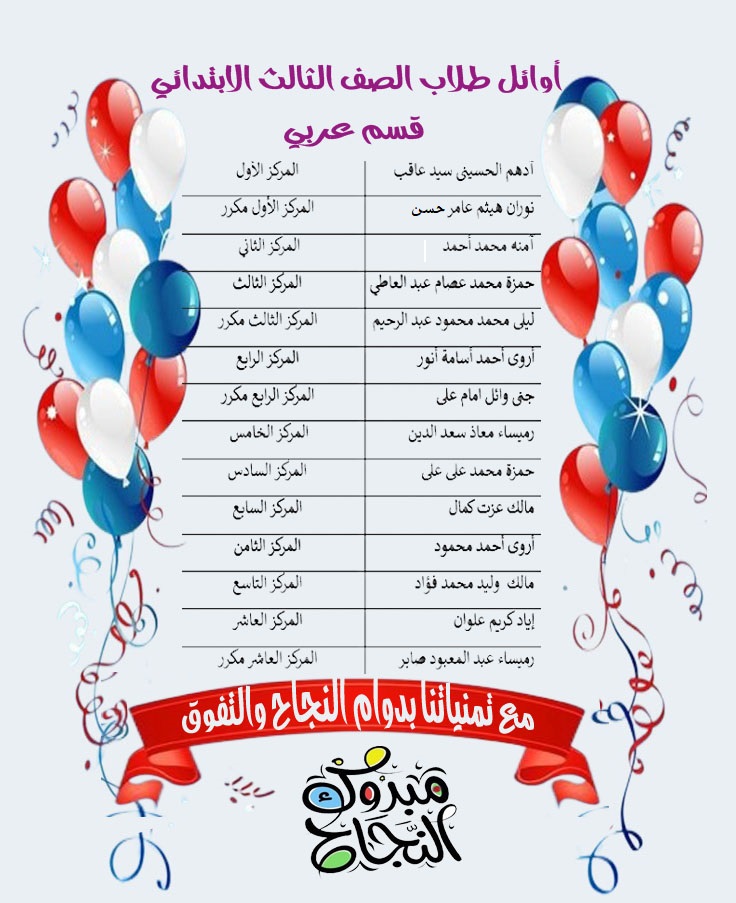 أوائل طلاب الصفوف الأول والثاني والثالث الابتدائي عربي